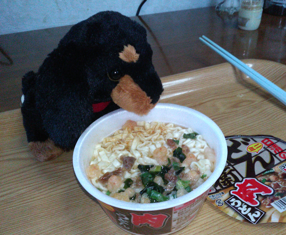 お肉大好き!犬の「くろ」が、どん兵衛・肉うどんに不満が一つ!お肉が少な~~~い🍖