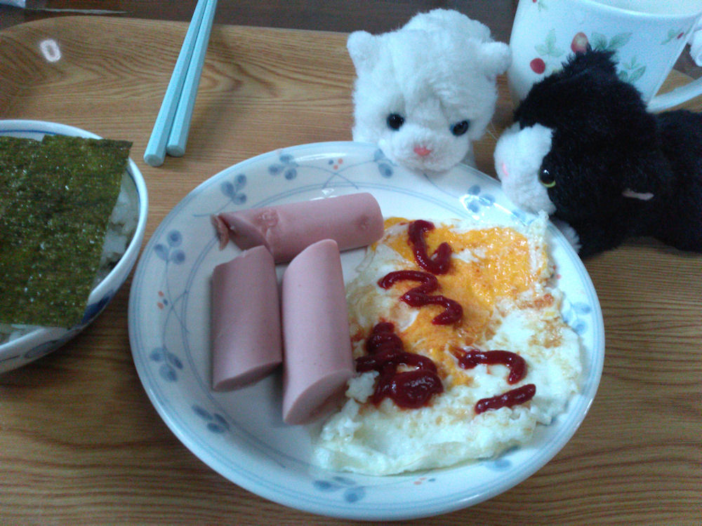 ちびくろ(犬)「朝ごはん、白いご飯なのに温かい牛乳を飲むの?」